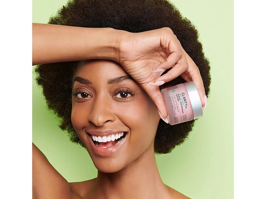 ClarityRx Live + Be Well Probiotic + Pink Himalayan Salt Mask strengthens the skin’s biome with natural probiotics.