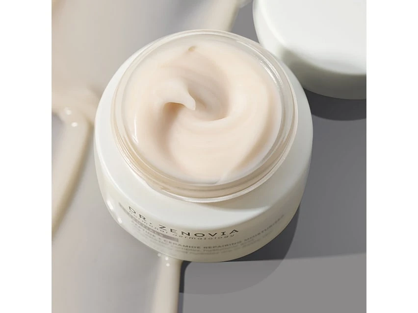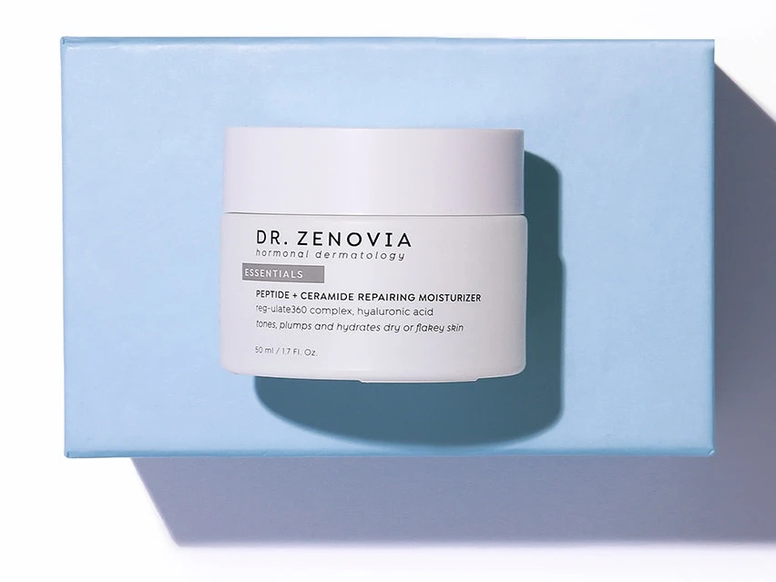 Dr. Zenovia Skincare Peptide + Ceramide Repairing Moisturizer attracts, retains and distributes moisture to fortify skin’s protect barrier.