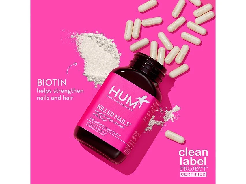 Support nail and hair growth with HUM Nutrition Killer Nails.