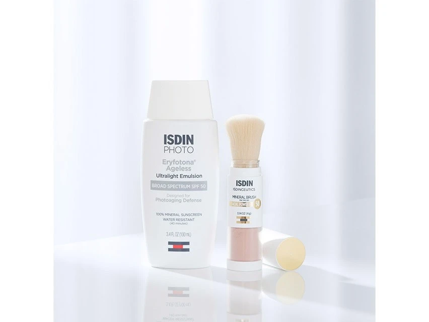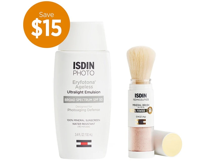 This sunscreen duo gives you makes it easy to always keep up sun protection. Eryfotona Ageless gives you a super lightweight sunscreen you can use every day during any part of the year. Isdinceutics Mineral Brush can be stowed away and applied over makeup to protect against the sun and environmental damage anywhere you go.