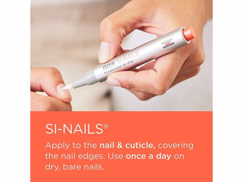 ISDIN Si-Nails Fast Absorbing & Hydrating Nail Serum Strengthener supports the strength of thin, brittle nails.