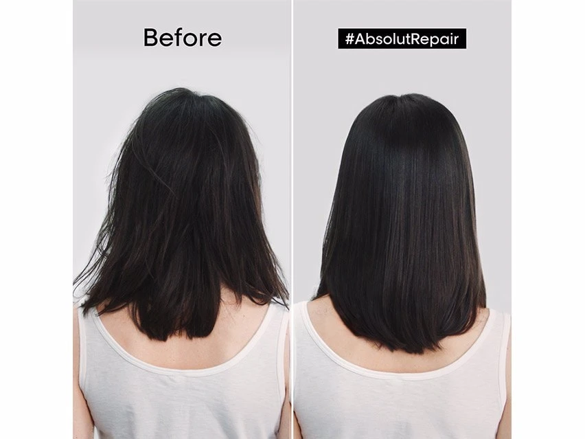 L’Oreal Professionnel Absolut Repair Gold Quinoa + Protein Instant Resurfacing Conditioner smooths damaged hair.