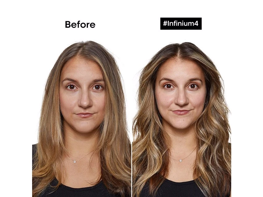 This infinium microdiffuser spray brings dry and dramatic results. Comb and re-comb hair without a sticky residue, while providing shape memory. Lock in style with a natural feel, elegant construction and optimal shine. Anti-frizz.
