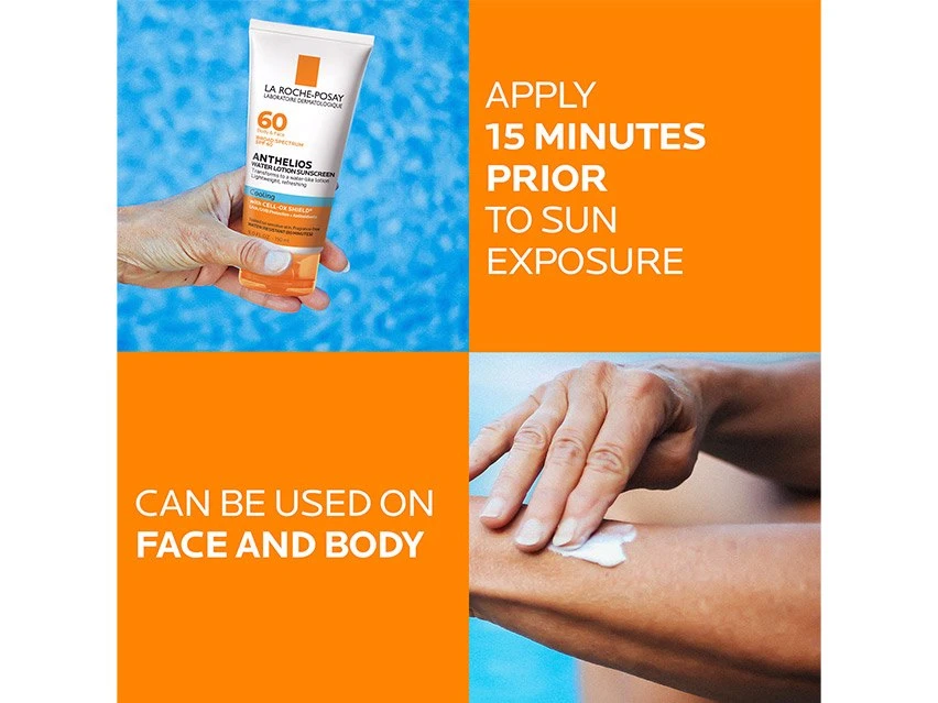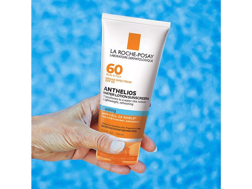 Protect your skin from the sun with La Roche-Posay Anthelios 60 Cooling Water-Lotion Sunscreen SPF 60.