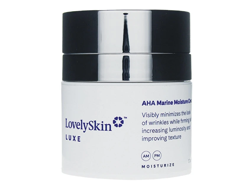 LovelySkin LUXE AHA Marine Moisture Cream recharges luminosity and firms skin.