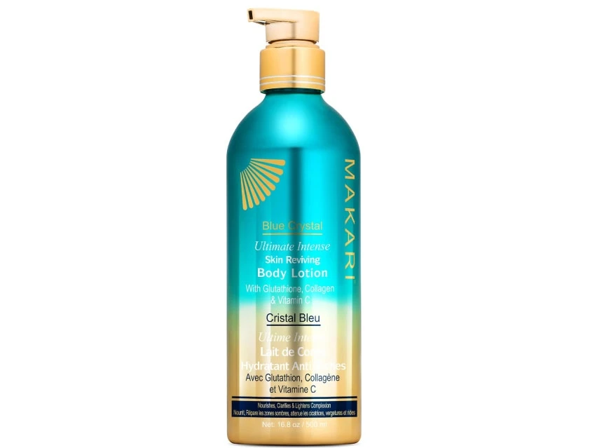 Makari Blue Crystal Skin Reviving Body Lotion restores skin’s glow.