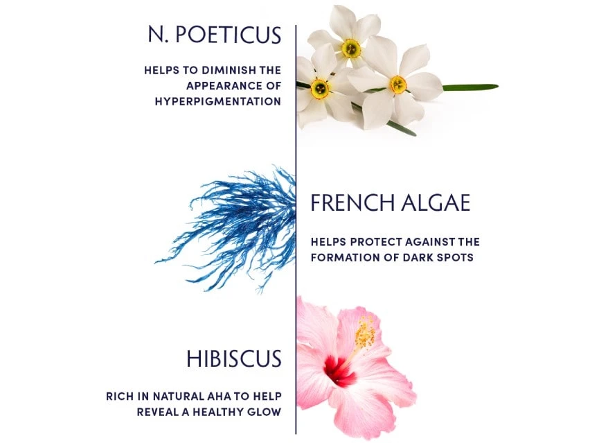 - Sustainably-sourced French algae provides antioxidant protection, defending against new discoloration