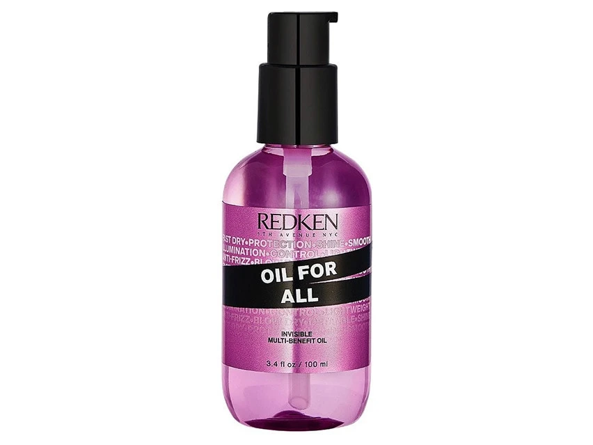 Redken Oil For All Invisible Multi-Benefit Oil is a universal hair oil that provides heat protection and tames frizz.