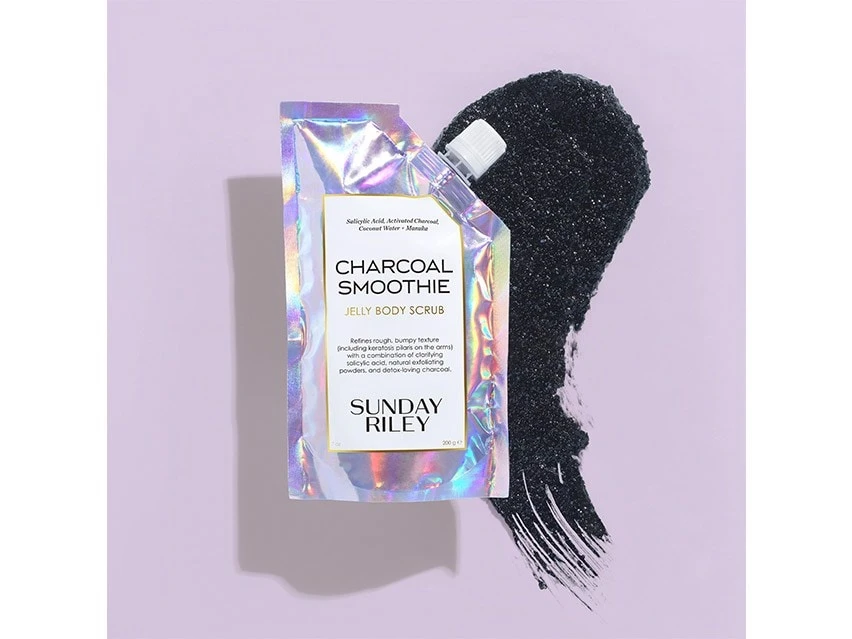 Smooth textured skin with Sunday Riley Charcoal Smoothie Jelly Body Scrub.