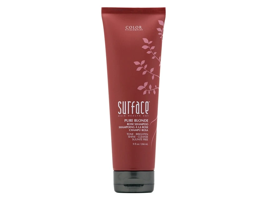Surface Pure Blonde Rose Shampoo is a color depositing shampoo for blondes and redheads.