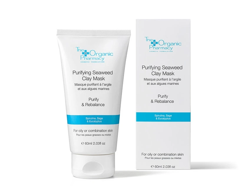 The Organic Pharmacy Purifying Seaweed Clay Mask clarifies and remineralizes skin.