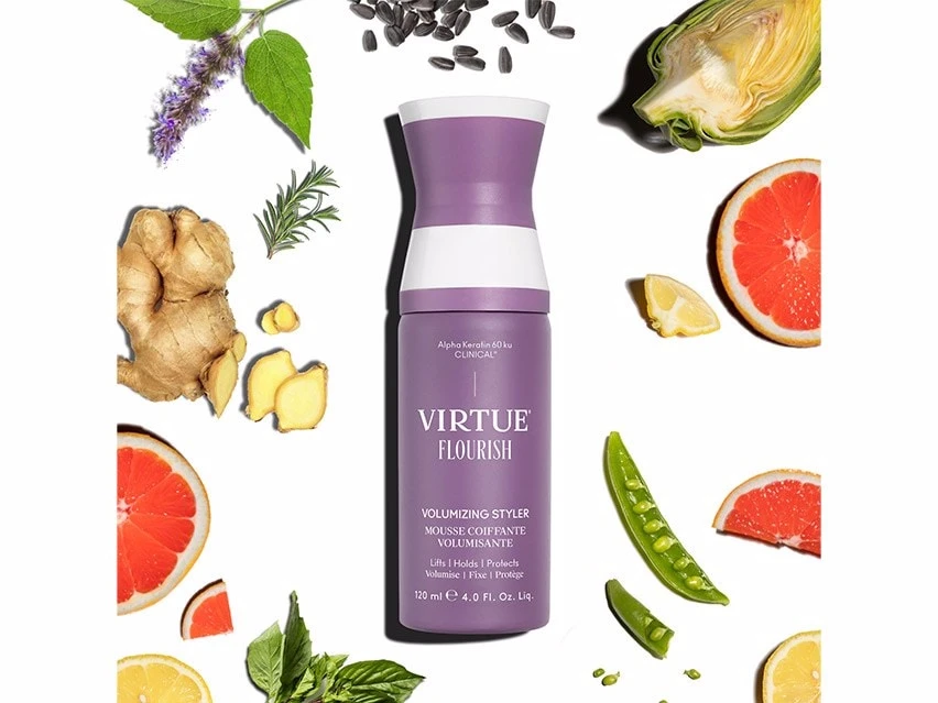 VIRTUE Flourish Volumizing Styler helps achieve fuller-looking hair while strengthening fragile strands.