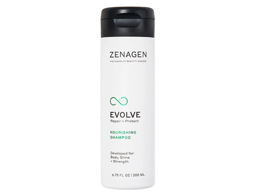 Zenagen Evolve Nourishing Shampoo repairs brittle hair, suitable for all hair types.